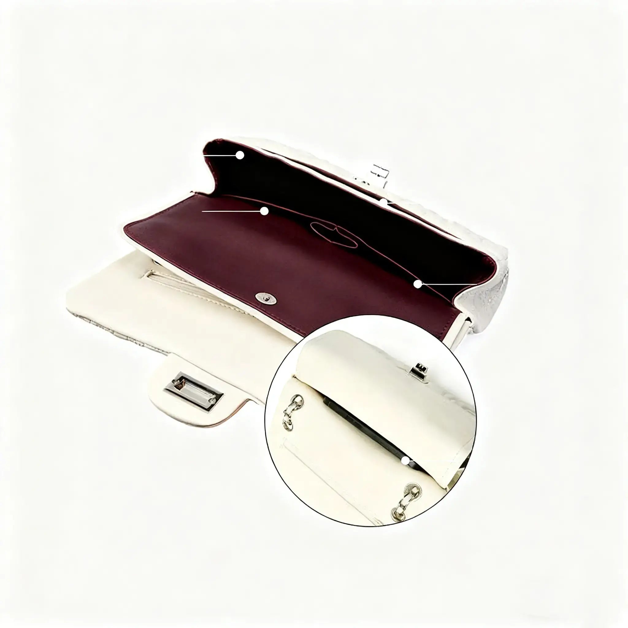 Phone, cardholder, keys, tissues, lipstick—each finds its place. The inner compartments make organization intuitive and calm. Just before stepping out, you feel it—the quiet assurance of being well cared for.