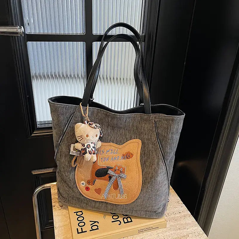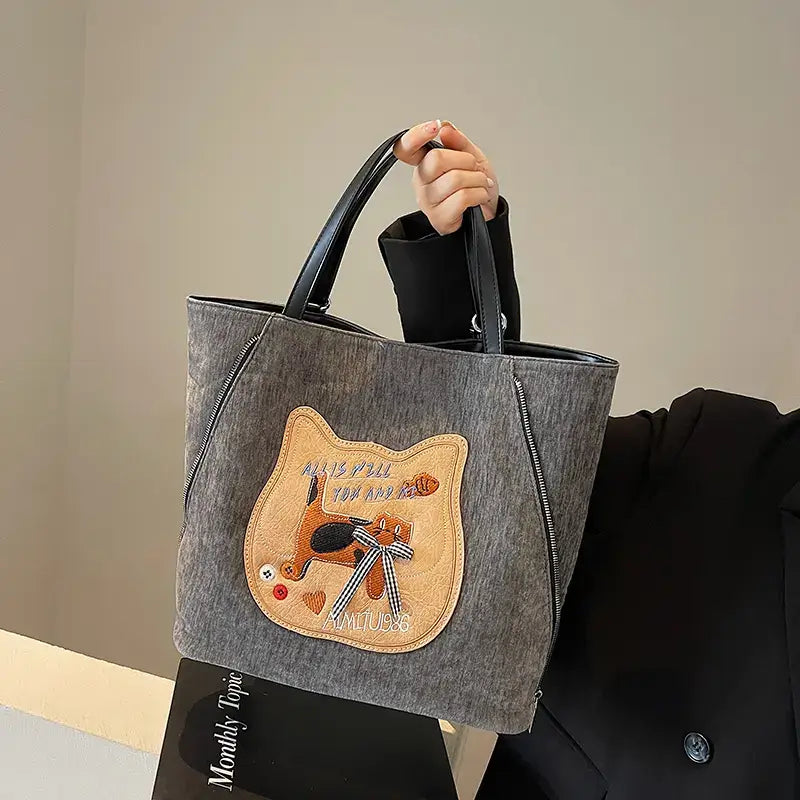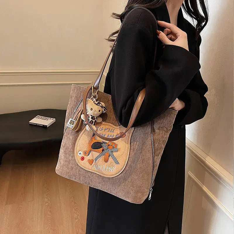 The lazy yet curious cat on the bag is a gentle touch from the designer’s imagination, turning plain canvas into a story waiting to unfold. Each glance brings a small smile—an understated kind of charm, a signature of taste that quietly sets you apart.