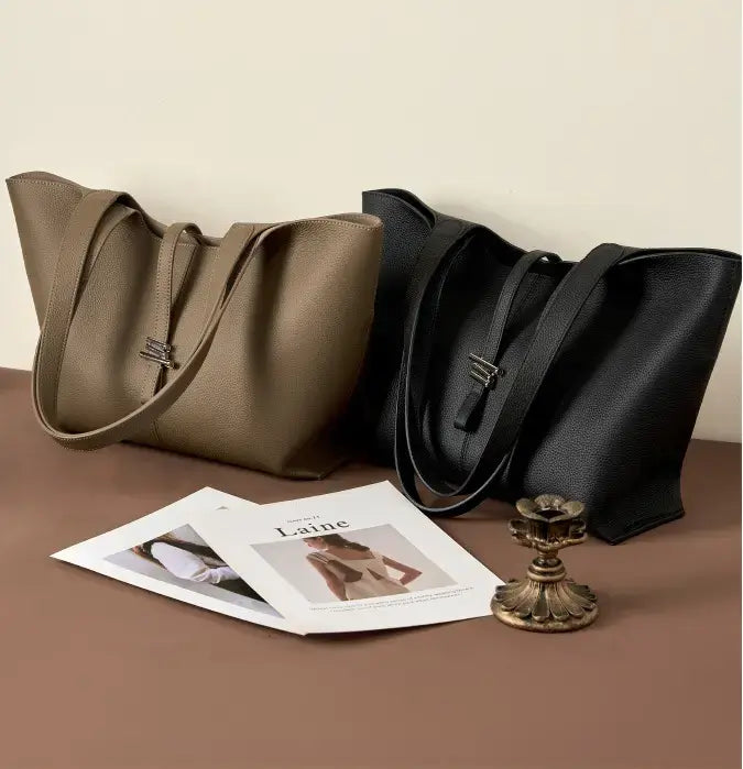 A restrained sheen and minimalist metal accents catch the light just enough. Black exudes composure; khaki brings warmth—each a timeless hue that pairs effortlessly with everything you own.