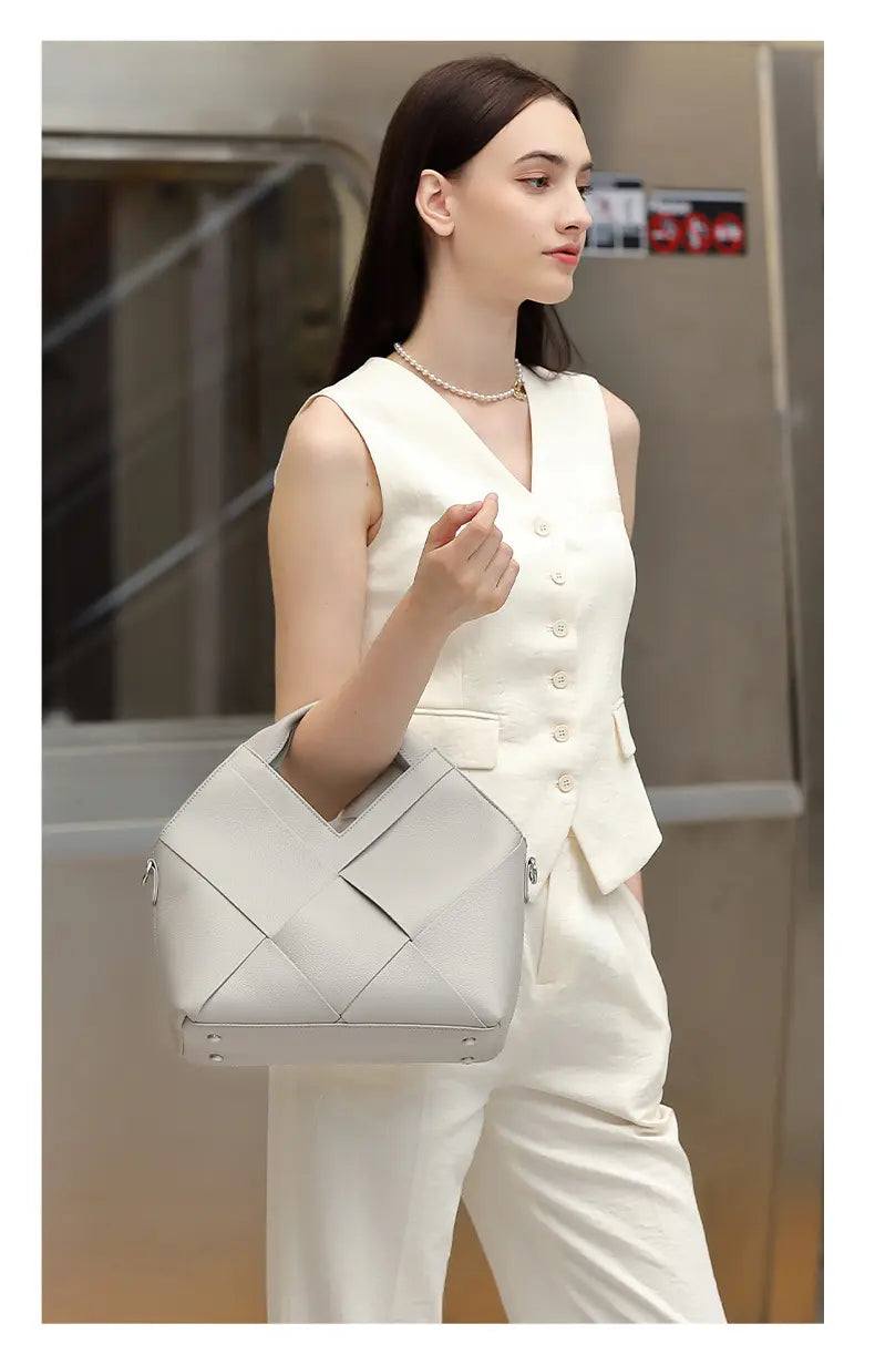 Minimalist hardware pairs beautifully with the woven texture, catching light in motion. Black for restraint, caramel for warmth, beige for softness, champagne for glow— every shade finds harmony within your wardrobe’s foundation tones.